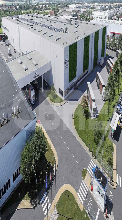 Skladovací čistá výška až 12 m, 9 vjezdů drive inn, 27 hydraulických ramp, nosnost podlahy až 11,9 t/m2, sprinklerová nádrž a hasící sprinklerový systém, FVE na střeše a vysoká izolace objektu (nižší provozní náklady).